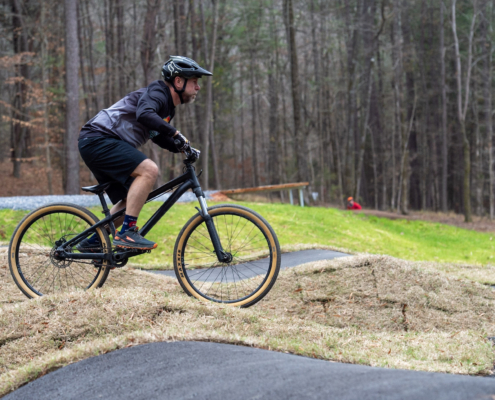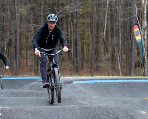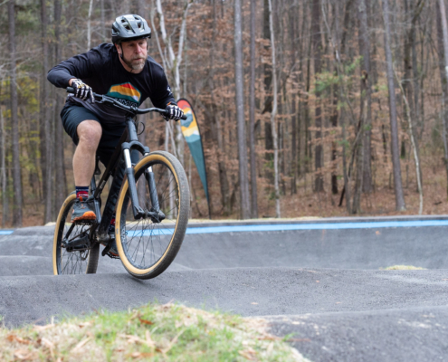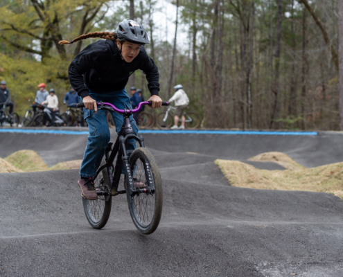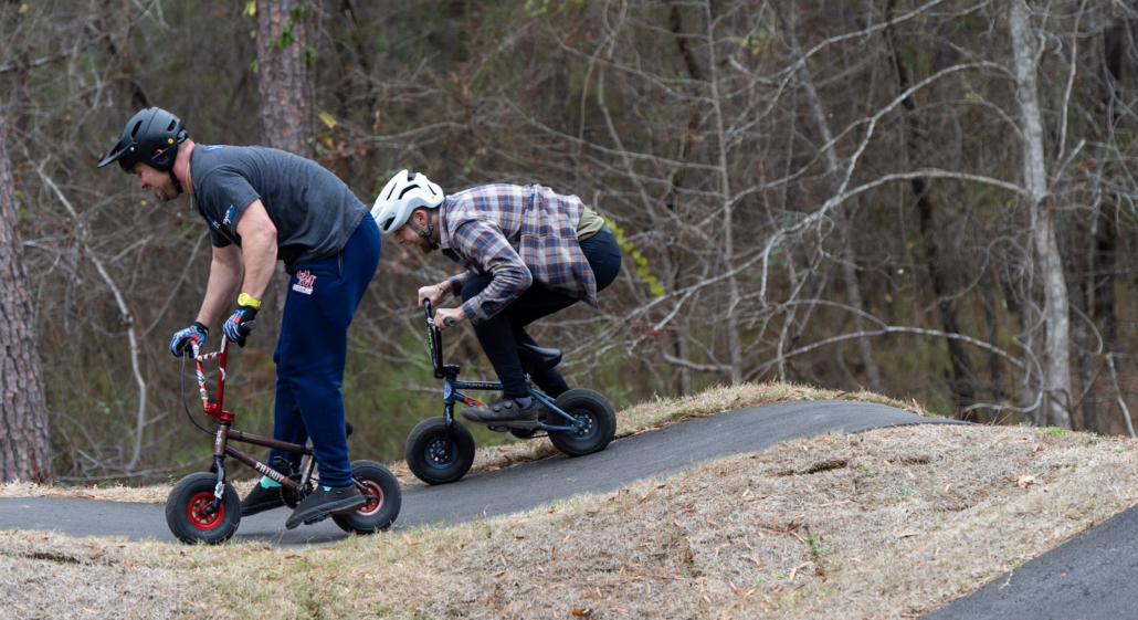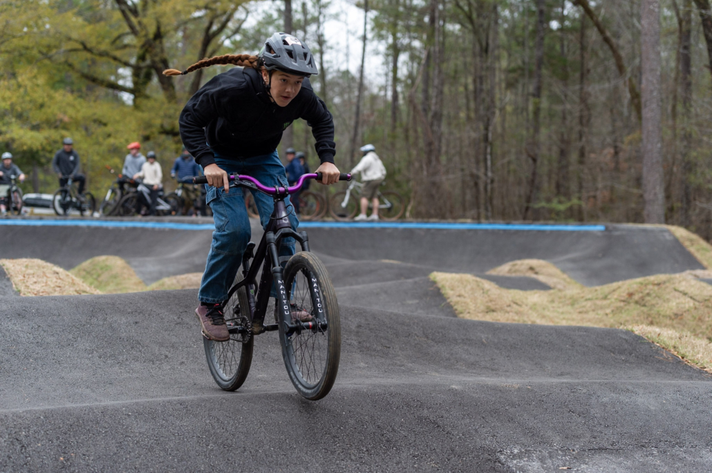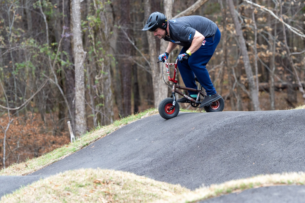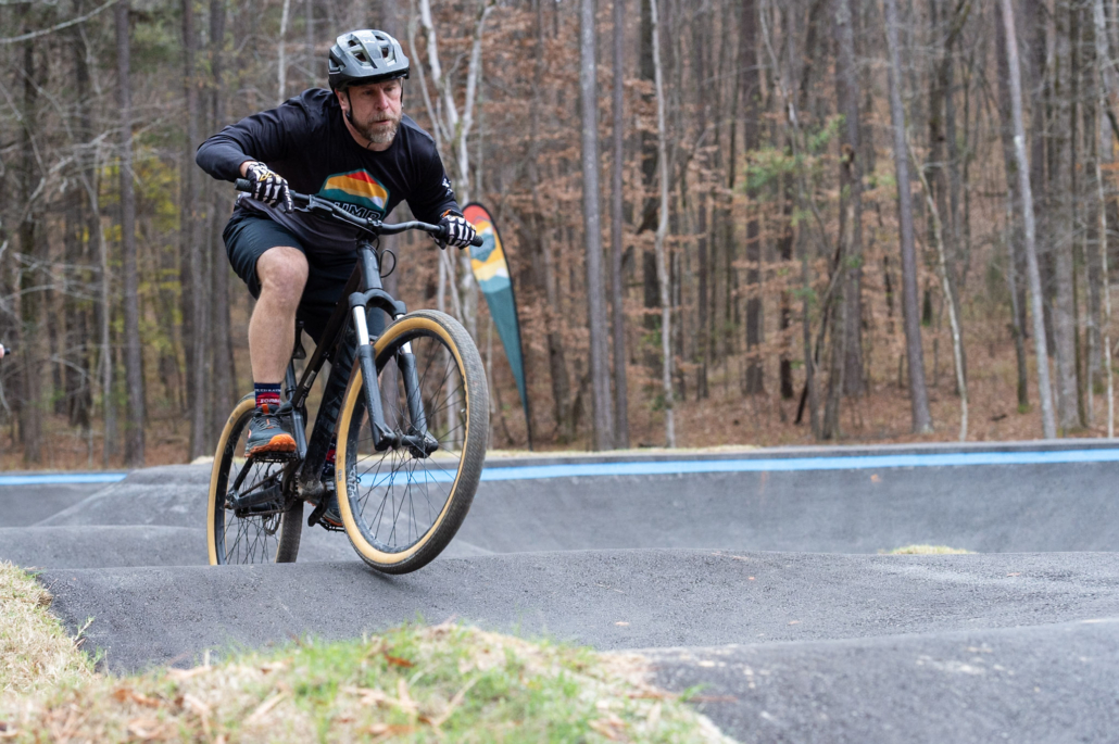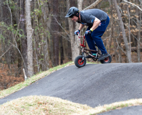 The event will be run as a four-round pump track time trial, with riders racing one at a time for a single timed lap per round. All starts are standing starts from a gate, and no pedaling is allowed—speed must be generated through pumping and body movement only.