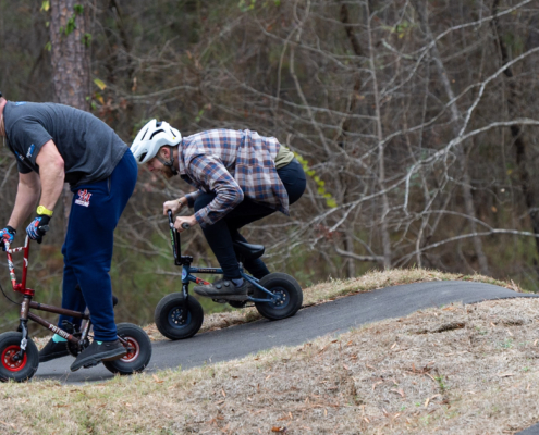 Round 1 start order will be random or organizer-assigned, while Round 2, Round 3, and Round 4 start order will be determined by the results of the previous round. Riders may voluntarily withdraw after any round as times are established; completed times remain valid, but riders may not re-enter once withdrawn. Final results are based on each rider’s fastest single lap across all rounds. Pedaling, skipping features, or leaving the course will result in a DNF for that round.